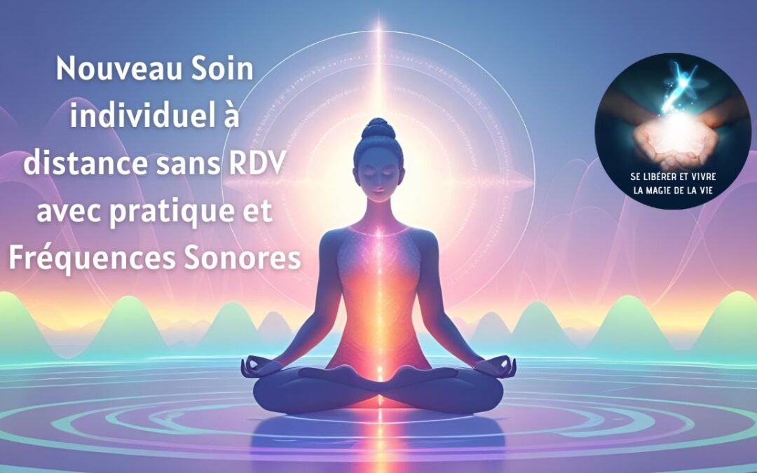 Nouveau soin à distance disponible avec retour + pratique + fréquences sonores Un nouveau soin avec retour, pratique proposée et des fréquences sonores adaptées est disponible : Soin individuel à distance sans RDV avec en plus du retour une pratique