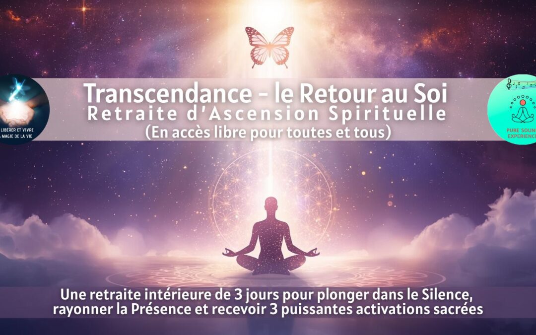 “Transcendance – le Retour au Soi” – Retraite d’Ascension spirituelle en ligne 📍 Tout se vit en ligne, depuis chez vous.🎟️ Inscription gratuite et informations ici : Une retraite vibratoire pour transcender l’expérience et revenir au Silence intérieur Et si